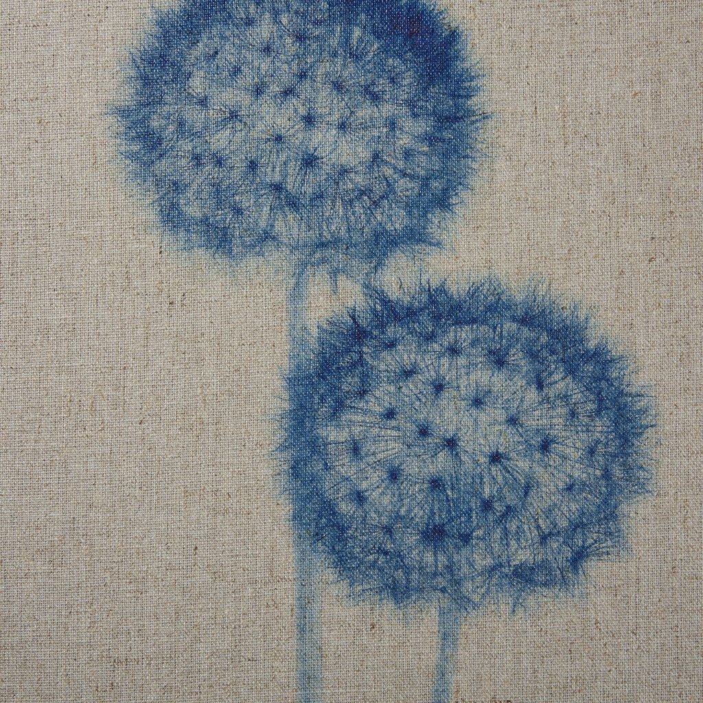 Vintage wall decor set with cyanotype floral printed on linen canvas