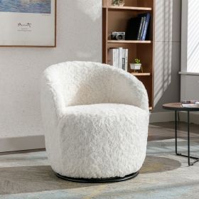 A&A Furniture,Artificial Rabbit Hair Fabric Swivel Accent Armchair Barrel Chair With Black Powder Coating Metal Ring,360° swivel feature make this mod