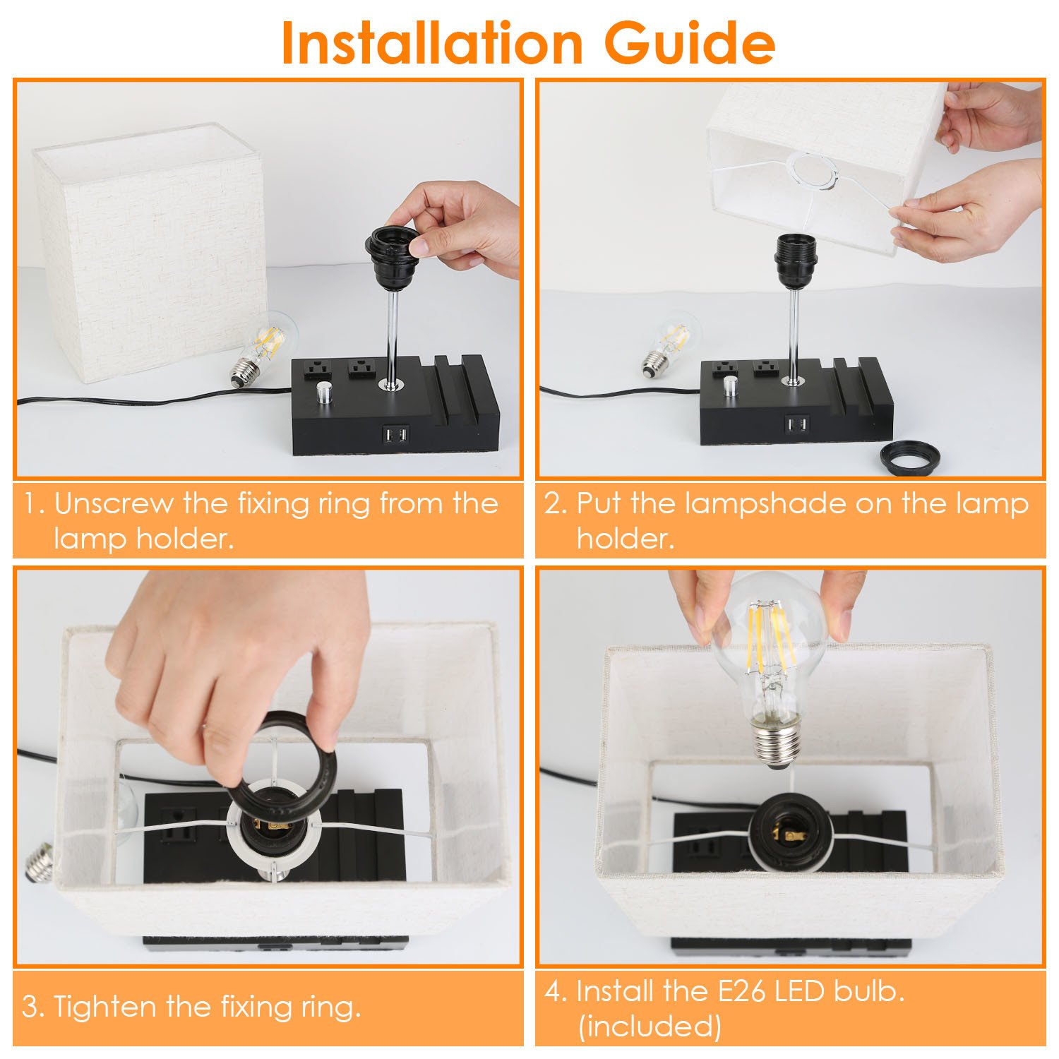 *E26 LED Bulb*:This lamp comes with a E26 LED lamp; which gives out comfortable warm light. With no flicker or dazzle; the comfortable light helps cozy up your bedroom and set the right; warm tone for reading and a good night’s sleep.