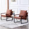 PU Leather Accent Arm Chair Modern Upholstered Armchair with Metal Frame Extra-Thick Padded Backrest and Seat Cushion Sofa Chairs for Living Room ( Brown PU Leather + Metal Frame + Foam)