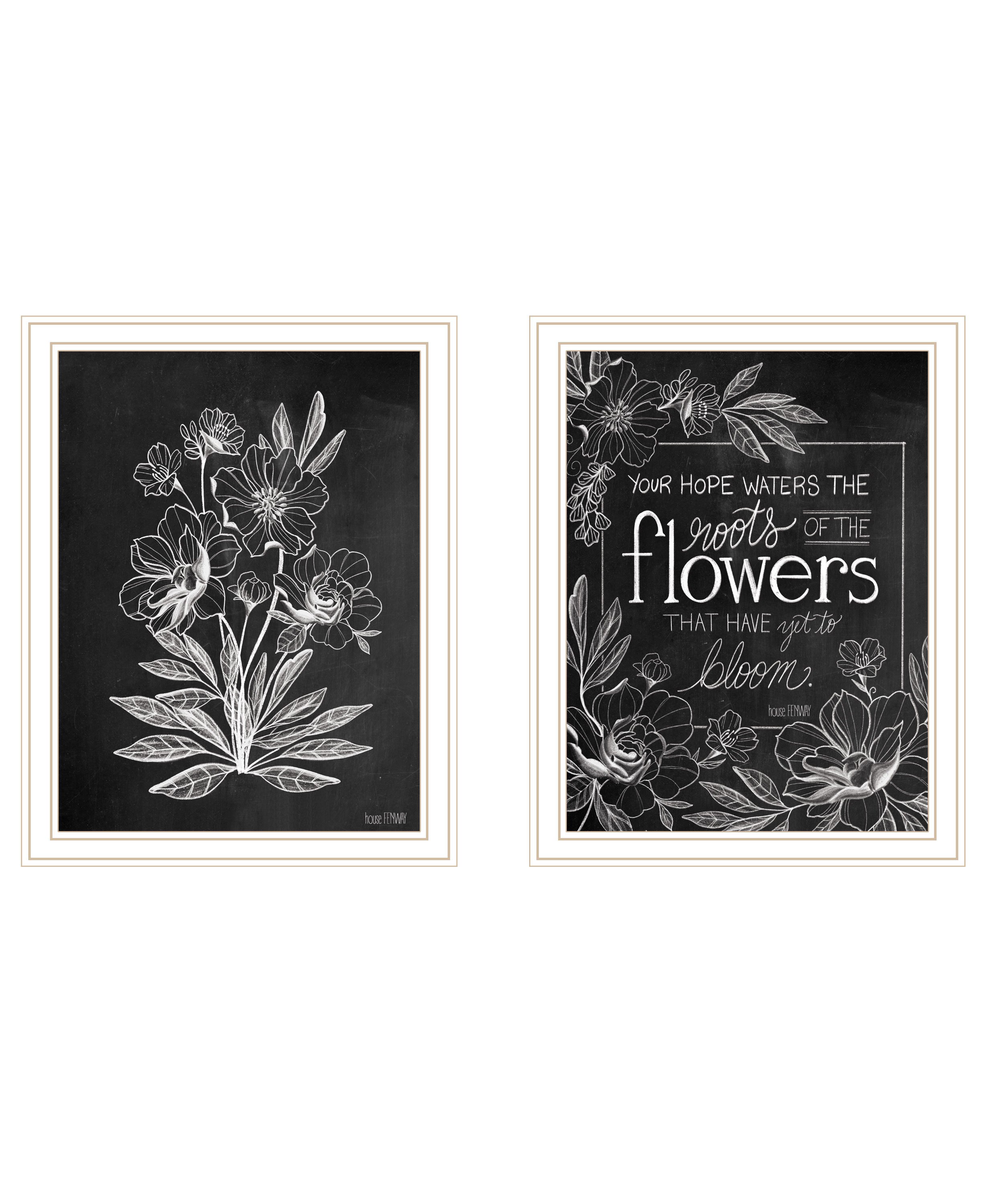 "Vintage Chalkboard Blooms" 2-Piece Vignette by House Fenway, Ready to Hang Framed Print, White Frame